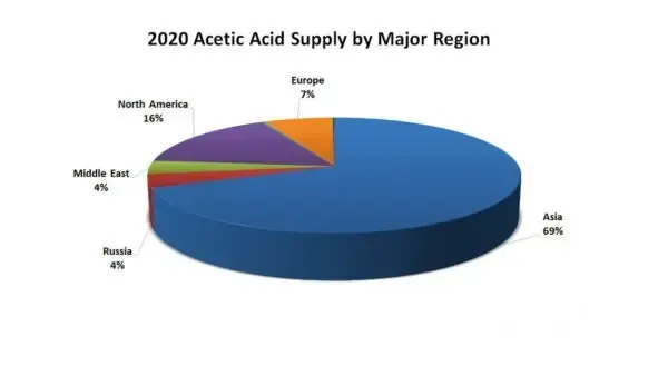 2020 Acedic Acid Supply by Major Region