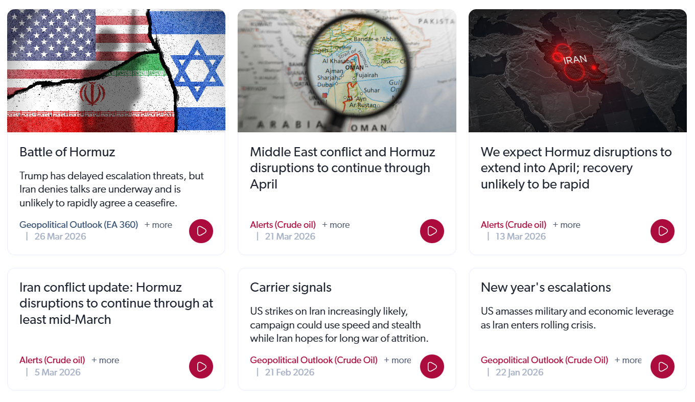 Built for clients who need a broader market view, EA 360 combines timely market intelligence, strategic insight and direct access to expertise through a single platform. It is designed to help users track developments, assess risk and identify opportunities across energy and the wider macro landscape.