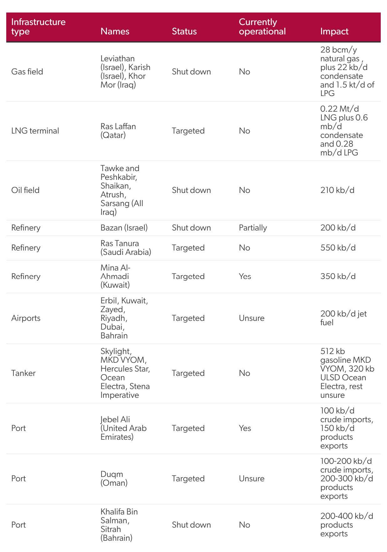Impacted Middle East energy infrastructure
